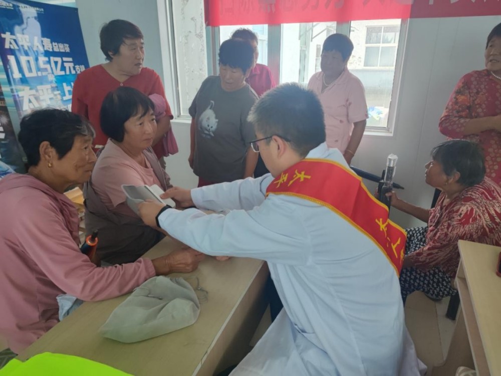 現(xiàn)場(chǎng)同時(shí)設(shè)置了義診專區(qū),為漁民提供免費(fèi)血壓檢測(cè)服務(wù)。工作人員借機(jī)以當(dāng)?shù)胤窖越Y(jié)合宣傳折頁,通俗易懂地講解反洗錢、防詐騙等知識(shí),實(shí)現(xiàn)健康關(guān)懷與金融教育相結(jié)合。