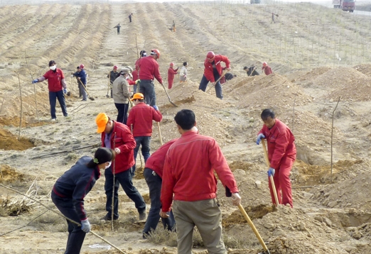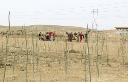 今年公司早在2月底就提前著手,專門行文向永寧縣政府申請樹苗,截止4月20日,通過多方協(xié)調(diào),前后三次從永寧縣林業(yè)局無償申領(lǐng)棗樹樹苗3100棵、沙棗樹苗5400棵、楊樹樹苗1065棵、刺槐樹苗3052棵,共計12627棵,其中補(bǔ)種去年樹苗2465棵。