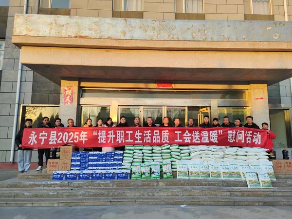 2024年12月25日下午,永寧縣總工會(huì)陳邵峰常務(wù)副主席及幫扶中心工作人員一行到天琛公司對(duì)現(xiàn)場值守人員進(jìn)行“雙節(jié)”前的慰問,并將米、面、香油、牛奶等慰問品一一發(fā)到員工手中。